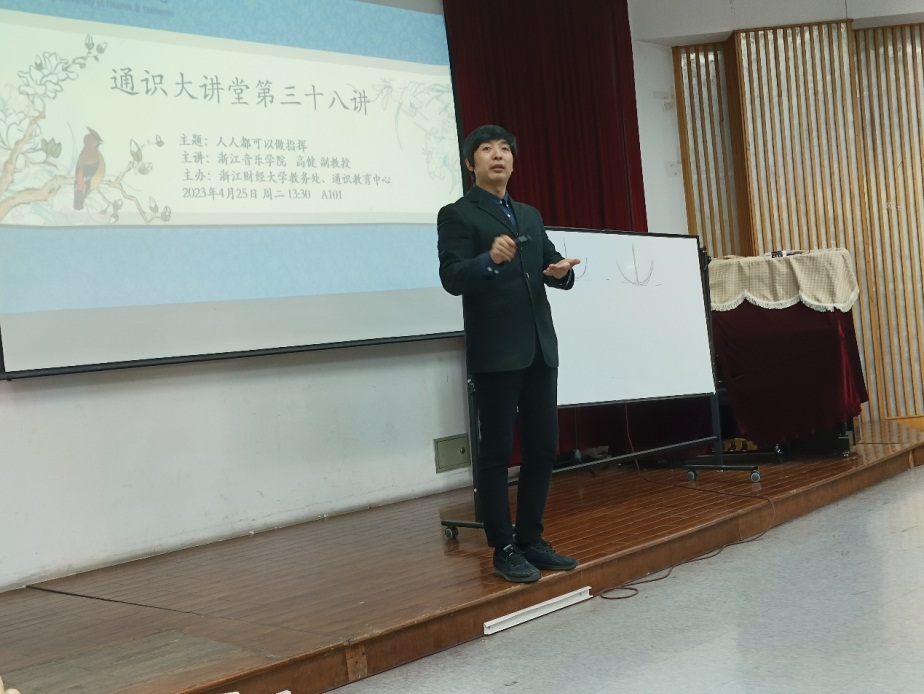 4月25日下午,浙江音乐学院作曲与指挥系副教授高健老师来到通识大讲堂,带来一场题为“人人都可以做指挥”的讲座,近300人聆听。高老师围绕“指挥”这一话题,从多个方面带领同学们感受“指挥”的世界,告诉大家“人人都可以做指挥”。本场讲座全场座无虚席,气氛热烈。