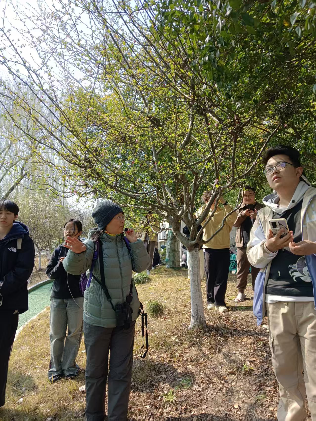 周老师凭借扎实的专业知识,为大家细致讲解各类动植物的类别、外形特点,以及它们在生态环境中的重要价值。从叶片纹理、花朵传粉方式,到小动物的生存习性、树木的生长规律,全方位解锁校园里的自然知识,让大家读懂身边的“生态百科”。